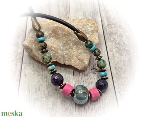 - Anyaga: kerámia gyöngy, afrikai türkiz, ametiszt
