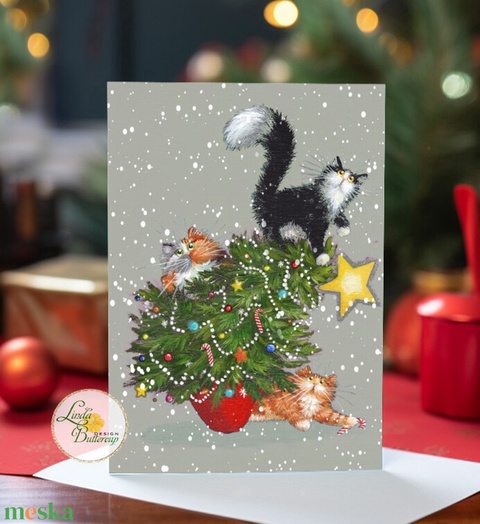vicces cicás karácsonyi képeslap, cicás, cica, macska, macskás, üdvözlő lap, képeslap, BORÍTÉKKAL