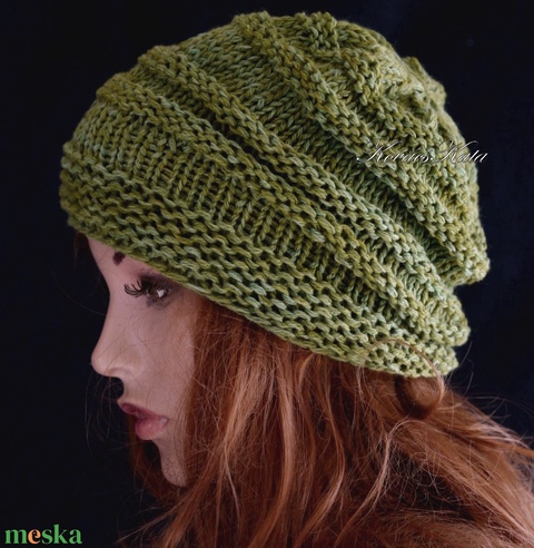 AMY-SAPI / softclown - egyedileg festett fonalból kézzel kötött kasmír-gyapjú sapka / avokadó