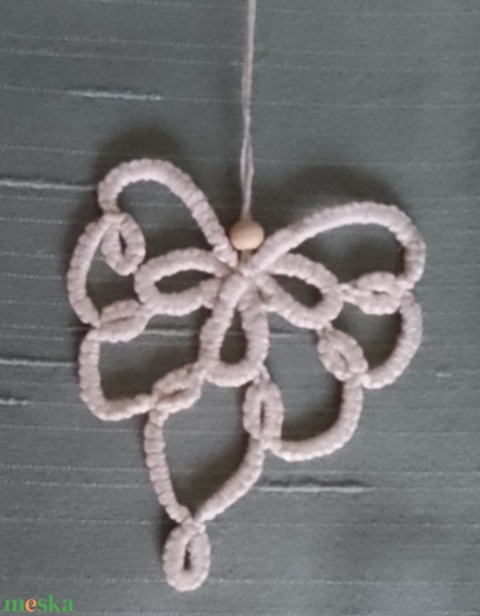 Szív karácsonyfadísz bézs színű hajócsipke technikával