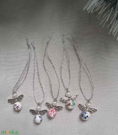 - Anyaga: fém angyalszárny, porcelán gyöngy