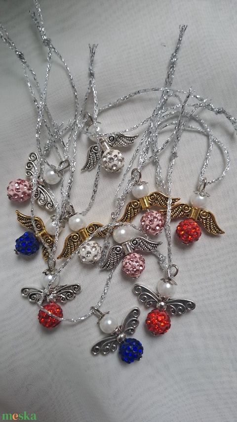 - Anyaga: műanyag gyöngy, fém angyalszárny, teklagyöngy