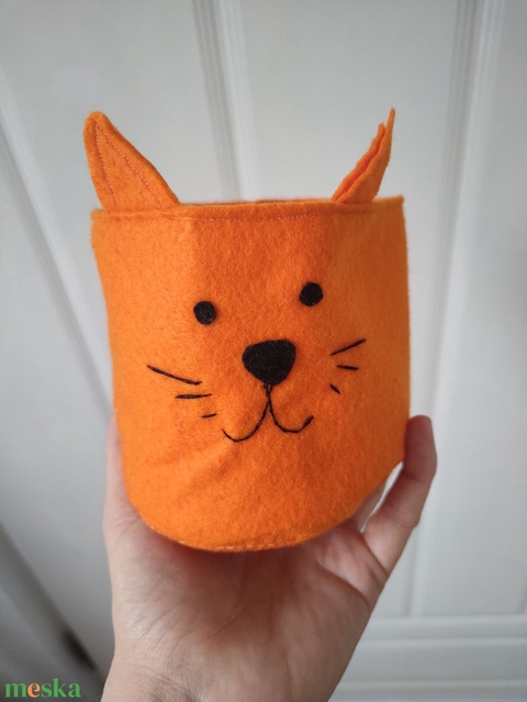 Cicás kaspó - filc kaspó takaró kosár - állatos tároló - cica formájú kosár - cica figurás dekoráció gyerekszobába
