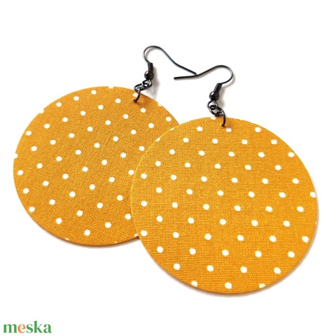 Sárga alapon pöttyös textilfülbevaló