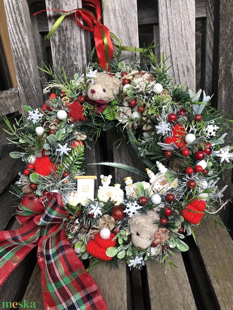 Karácsonyi ajtókopogtató macikkal, vonattal, sapikkal