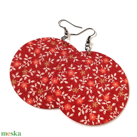 Meleg piros alapon apró virágmintás textilfülbevaló