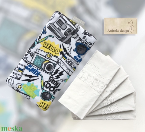 Retro fényképezőgép mintás bélelt papírzsebkendő tartó - Artiroka design