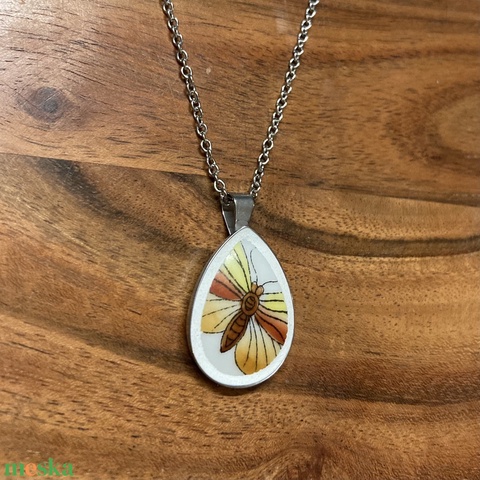 Mentett Herendi darabok - pillangós porcelán nyaklánc - nemesacél csepp medálos