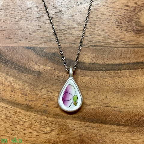 Mentett Herendi darabok - pici csepp porcelán nyaklánc - nemesacél lánccal