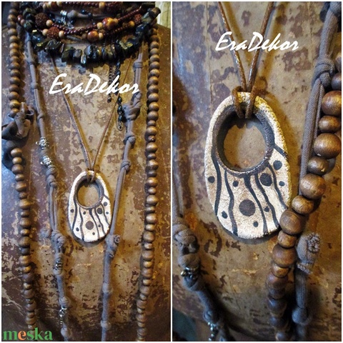 - Anyaga: vízbázisú akrilfestékek, vízbázisú lakk, fa, , zsinór, fa, gyöngy, bőr