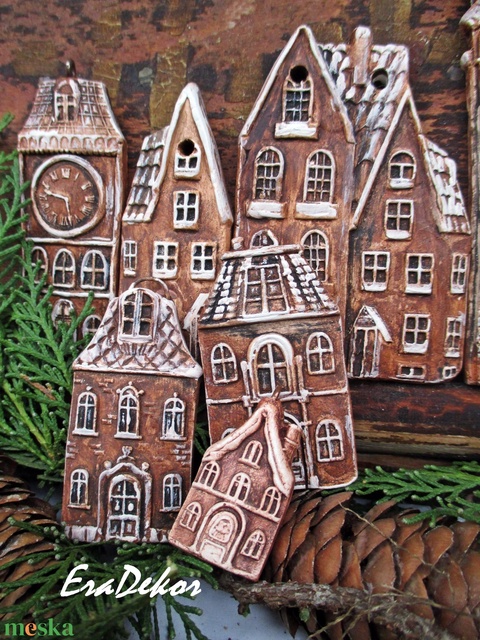Vintage karácsonyi házak 10db karácsonyfadísz