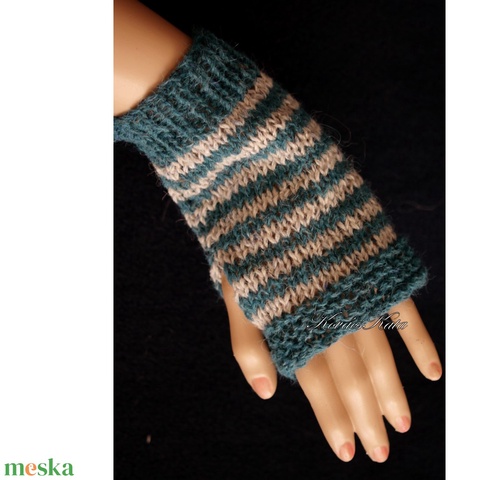 BOSZI KESZTYŰ / alpaka tweed - kézzel kötött rövid kesztyűszár, kézmelegítő / petrol-bézs