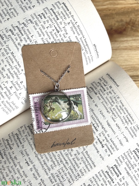 Régi vintage bélyeg nyaklánc agár kutya kutyás