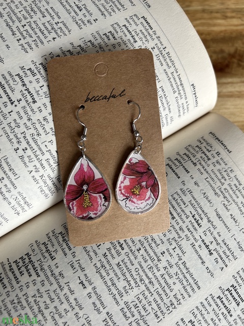 Könyv könyvlapos lógó fülbevaló virág orchidea