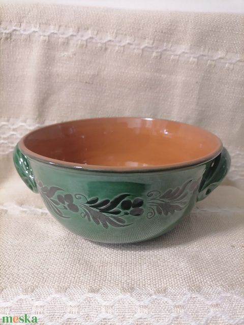 - Anyag/Összetevő vörösre égő agyag, színtelen ólommentes máz, zöld ólommentes máz