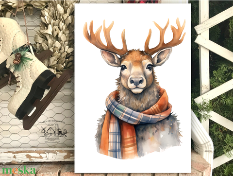 Szarvas - téli, karácsonyi faldekoráció - vászonkép tekercs, 30x20 cm
