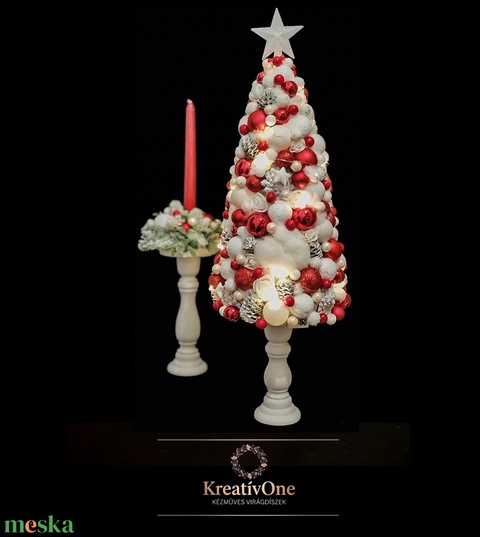 Elegáns, fehér-piros karácsonyi asztali dísz szett