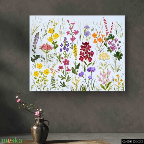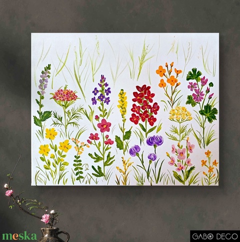 Vadvirágos, botanikai akril festmény, vászonkép