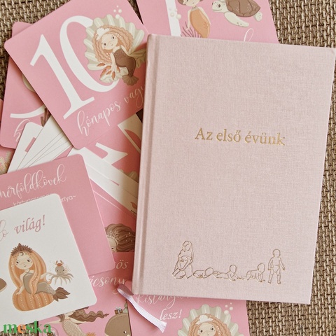 Kislányos babaváró csomag: babanapló és mérföldkő kártyák