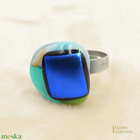 - Anyaga: zöld türkiz üvegek, kék dichroic ékszerüveg, nemes acél gyűrű alap