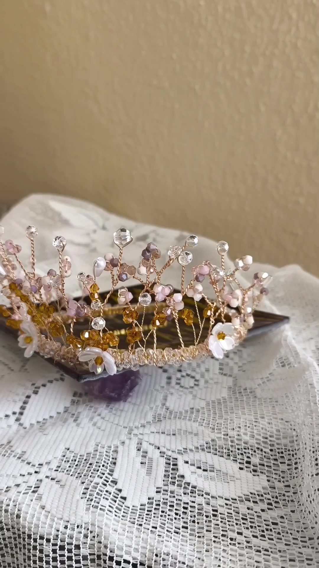 - Anyaga: ékszerdrót, kristály gyöngy, akril virág, üveg gyöngy
