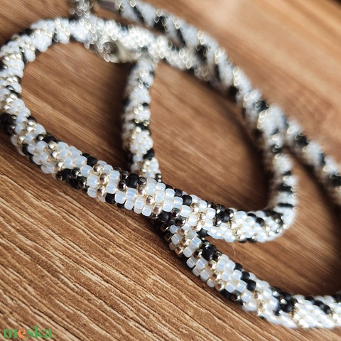 Fekete-fehér gyöngyhorgolt nyaklánc