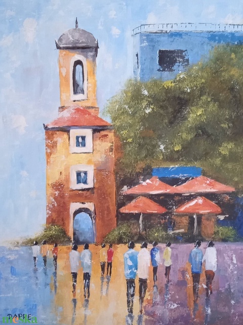 Forgatag – városi jelenet Akril festmény faroston (30×40 cm)
