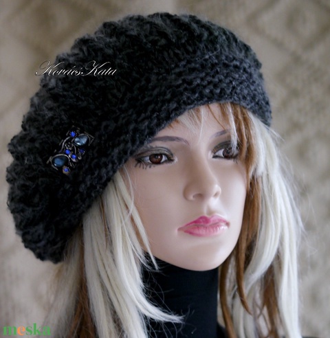 BORBÁLA / antracit ombre - trendi kézzel kötött sapka, barett