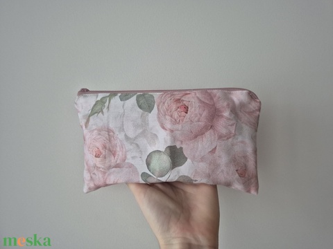 Rózsás pamut nesszeszer - mályva masnis cipzárral