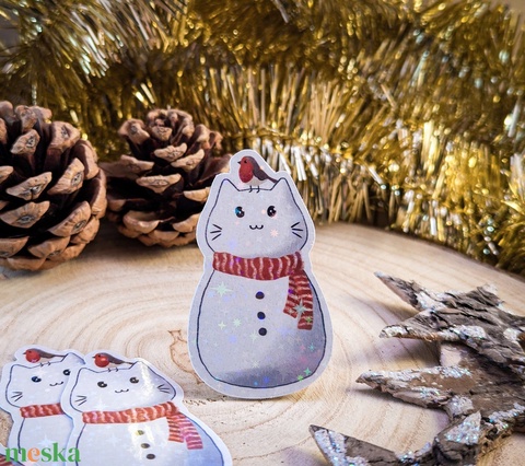 Hóember-cica matrica - Cuki karácsonyi dekoráció