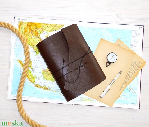 KALANDOR - Valódi bőr borítású kézműves napló A5 méretben - Iránytű motívummal