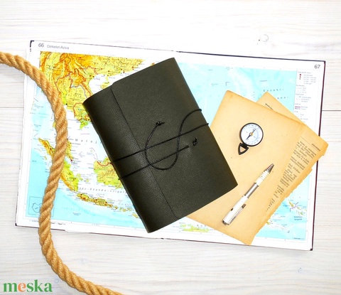 KALANDOR - Valódi bőr borítású kézműves napló A5 méretben - Iránytű motívummal