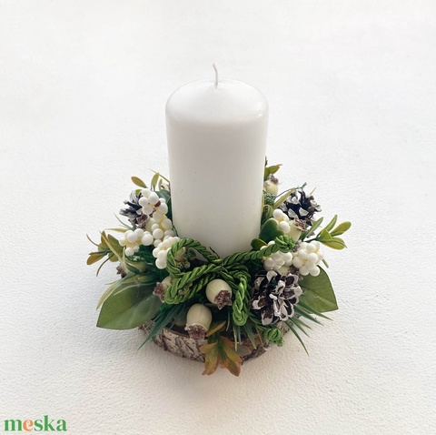 toboz, gyertya, művirág, fakorong