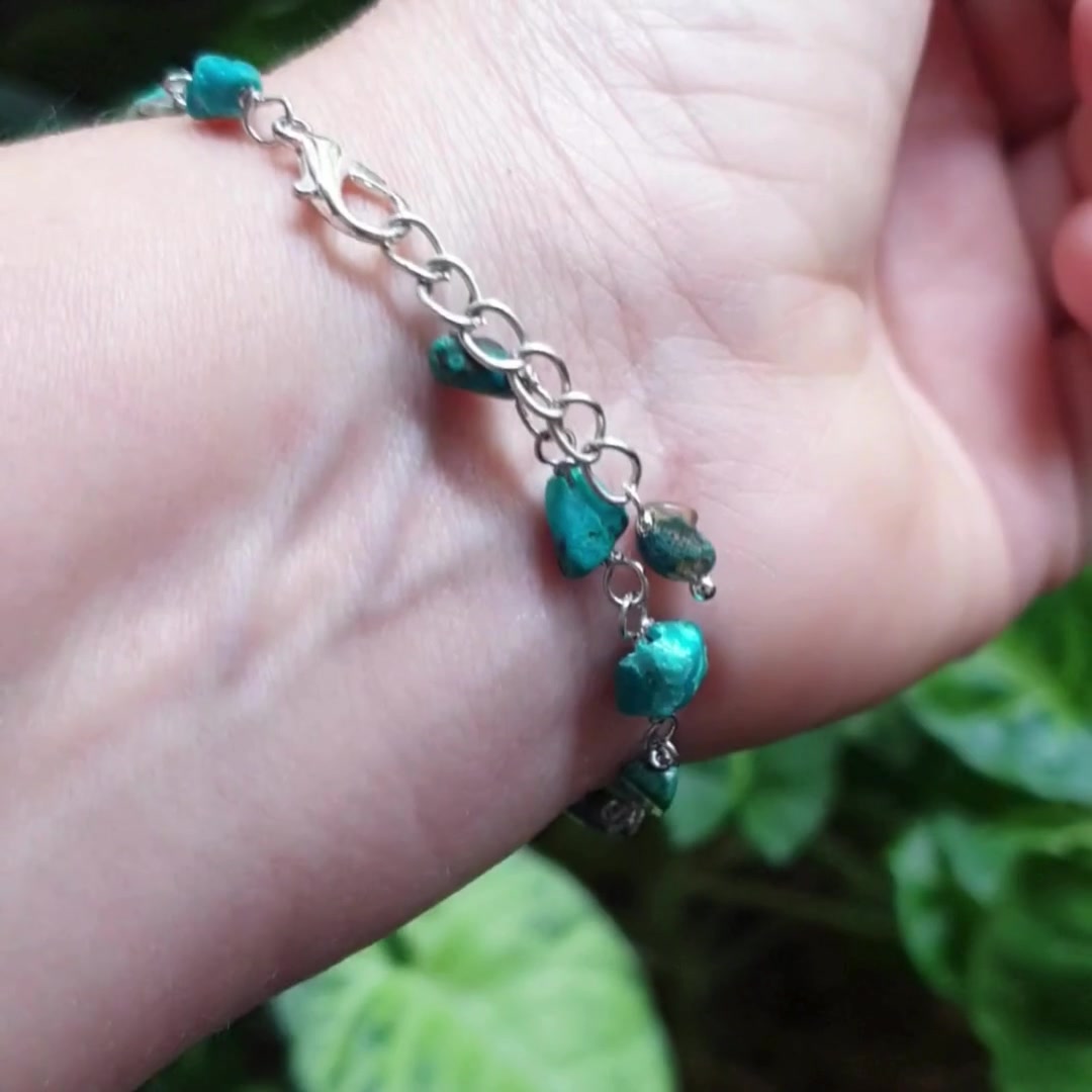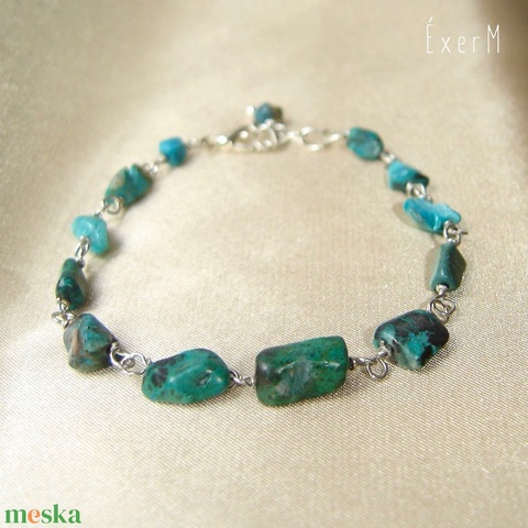 ásvány, krizokolla, ezüstözött ékszerdrót, delfinkapocs
