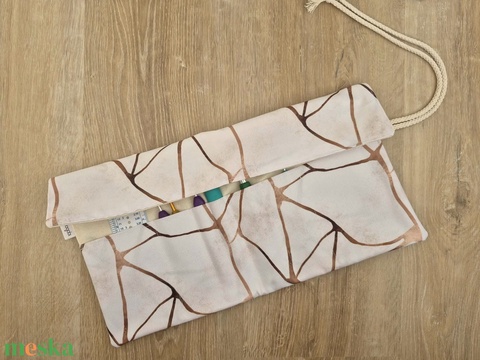 Arany-vászon textil tok, tároló (ceruzatekercs, roll-up tartó)