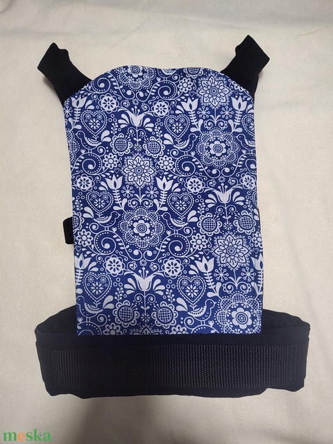 Játék csatos hordozó - kék mintás fekete pántokkal