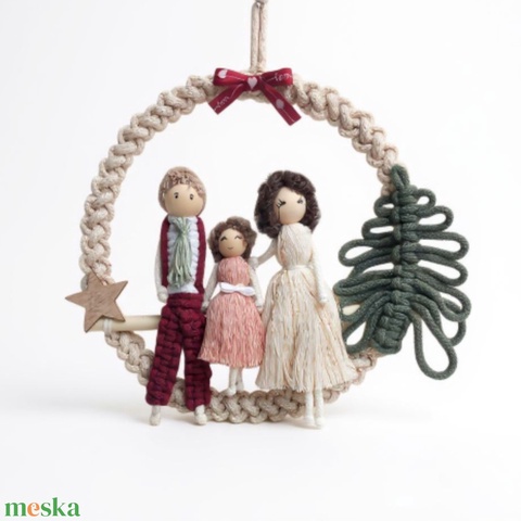 Makramé karácsonyi családi falidísz – egyedi, személyre szabott ajándék