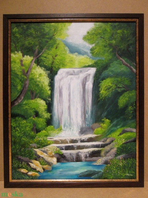 - Anyaga: olajfesték, farostlap, fa keret, lakk, fém akasztó