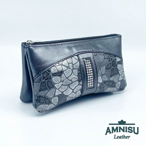 Sötét ezüst - szürke mintás egyenes kristály köves női pénztárca G8001