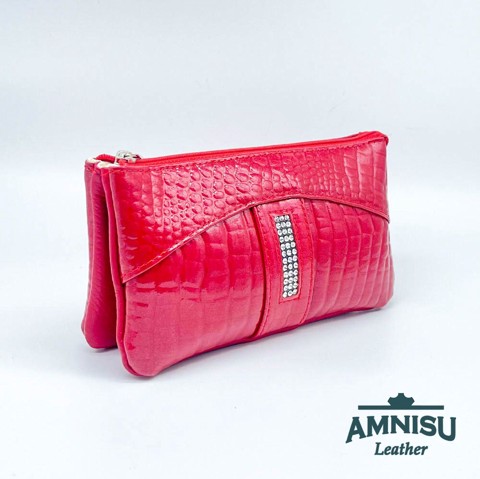 Piros lakk krokkómintás egyenes kristály köves női pénztárca G5008