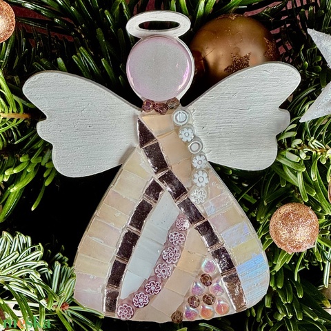 Arany-fehér angyalka fa alapon. 10x8 cm