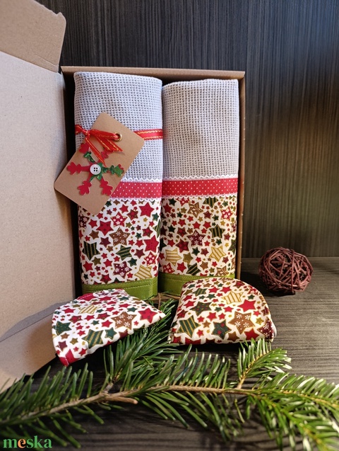 Karácsonyi textil fedő fogó és konyha ruha szett