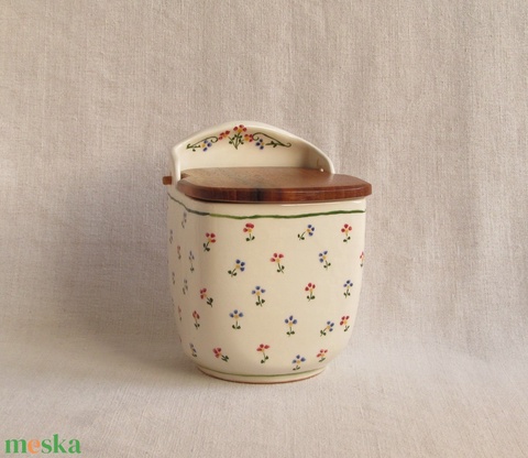 Kerámia sótartó, cukortartó fa fedéllel