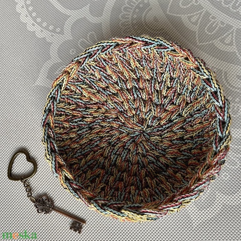 Horgolt kulcstartó kosár különleges fonalból - Kisherceg design