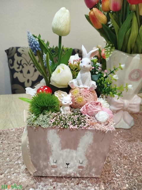 Cuki nyuszis tavaszi asztaldísz box