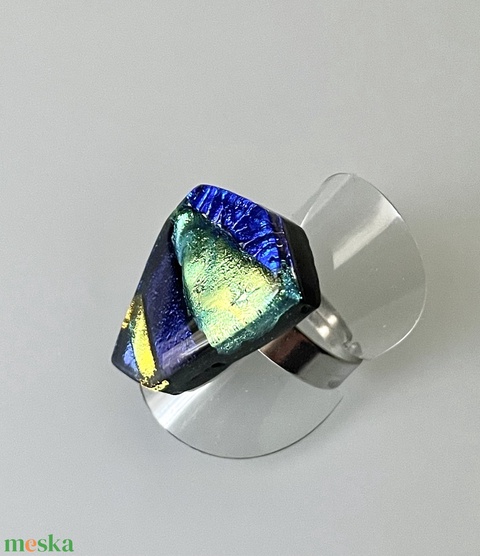 Színes irizáló gyűrű, üvegékszer