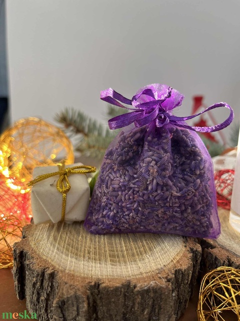 Saját termesztésű lemorzsolt levendulával megtöltött zsákocska. A levendula vegyszermentes birtokunkról származik.