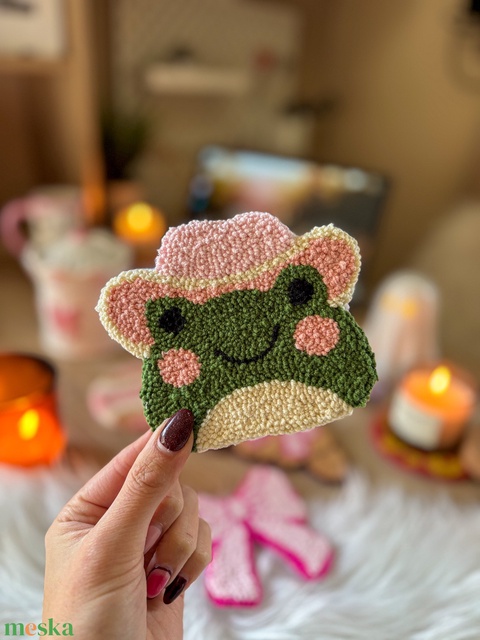 hímzett poháralátét, Béka