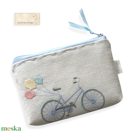 Hímzett bicikli mintás egyedi irattartó pénztárca - Artiroka design