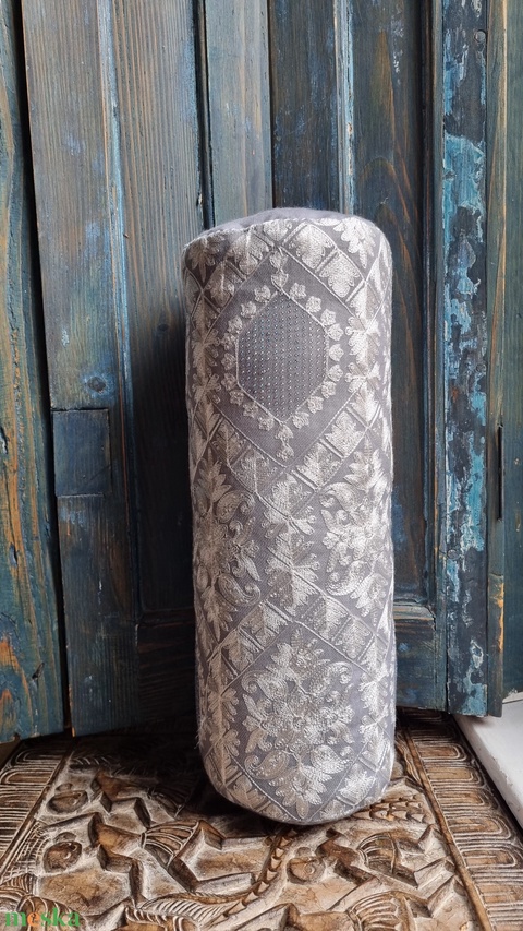 Ezüst hsjnal-Hímzett hengerpárna ezüst/fehér/Swarowski gyöngyökkel